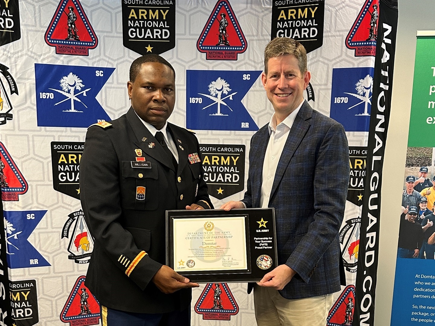 Le président de Paper & Packaging, Steve Henry, et le lieutenant-colonel de l'armée américaine, Julian Milligan, ont officialisé notre accord de partenariat PaYS en le signant lors d'un événement organisé dans nos bureaux de Fort Mill, en Caroline du Sud.