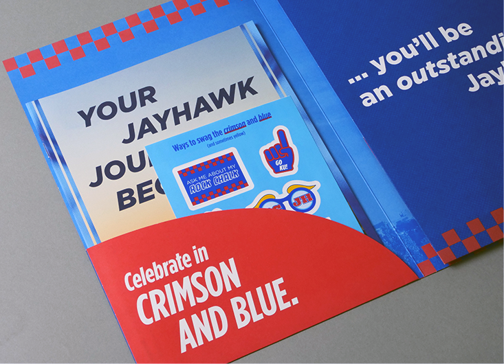 This piece was created for the KU Admissions office, who was looking for “something different” from previous years. Their goal was to create a piece that would generate excitement and help KU stand out from their competitors, all while staying within a limited budget.