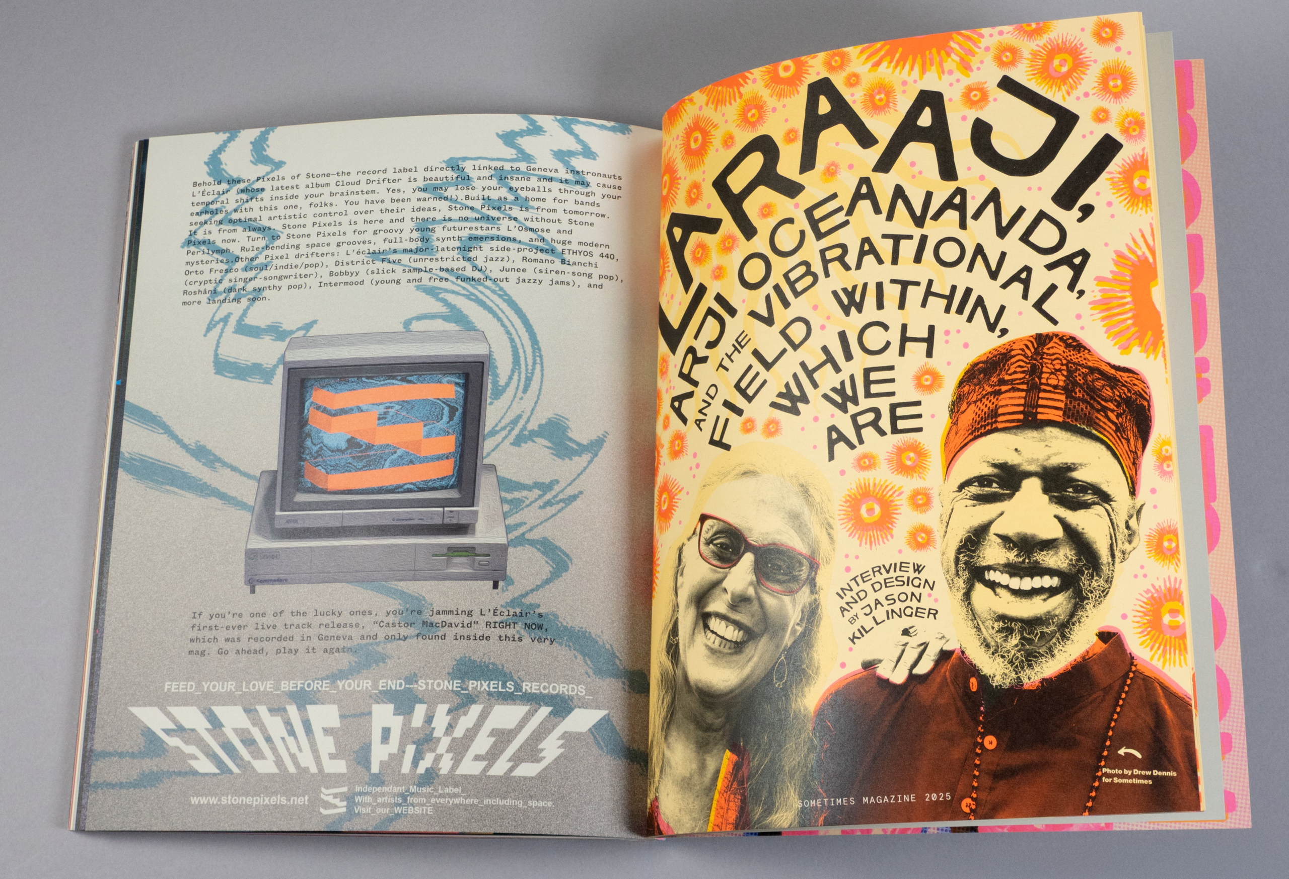 Sometimes Magazine is a self-published annual created in 2017 by a small group of friends who live all over the world. It serves as an outlet for independent music journalism, deadline-free graphic design and illustration, film-based photography, and those who carve out their own path. Printed offset and then perfect bound, Sometimes Magazine self-identifies as “Part fan zine, part DIY music journalism, part academic journal, part who-the-hell-knows.” Inside, readers will find long interviews with and thoughtful reviews of some of the most important musicians and artists in the world. This tribute to spirit of wacky, groovy 60s and 70s rock mags is available for purchase on their website and globally in stores.