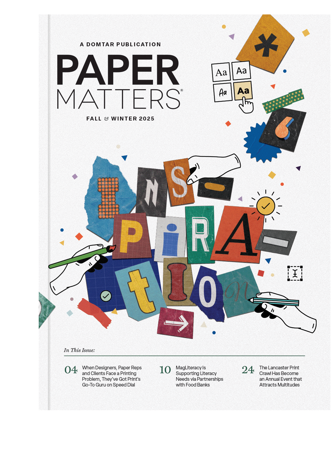 In this issue of Paper Matters, we’re celebrating the many forms that inspiration takes. You’ll find stories of bold design thinking, innovative printing techniques and the unexpected ways paper continues to shape conversations and communities. Each story reminds us that inspiration doesn’t just happen by chance – it grows from curiosity, persistence and the courage to see things in a different light.